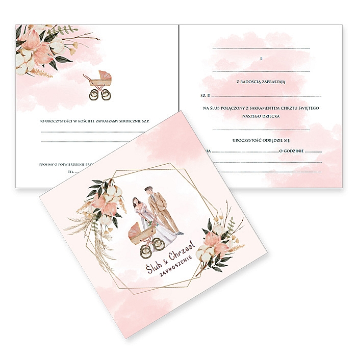 / Zaproszenia ślubne / Zaproszenia gotowe do wypisania 24h / Zaproszenie na Ślub z Przyjęciem i Chrzest 2w1