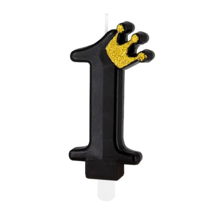 Świeczka czarna ze złotą koroną cyfra 1